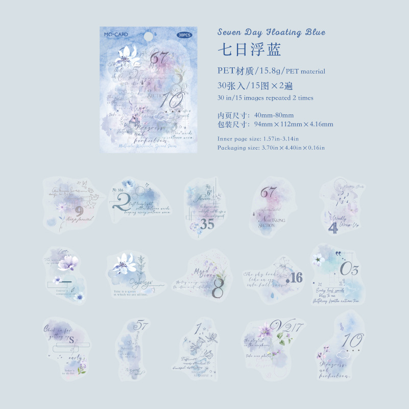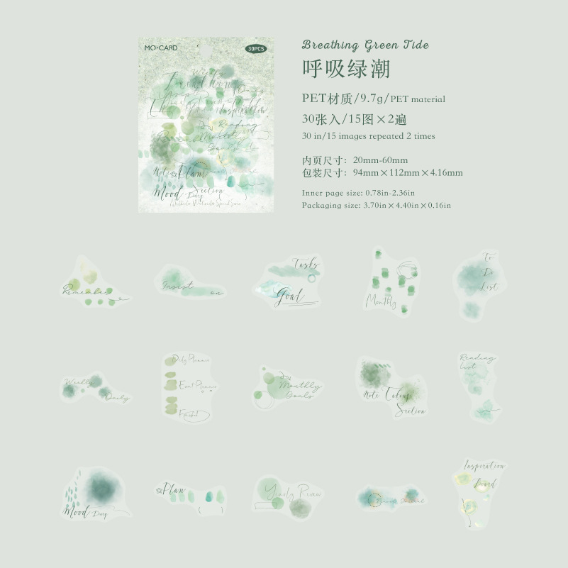 30Pcs Watercolor Smudging Theme PET Stickers